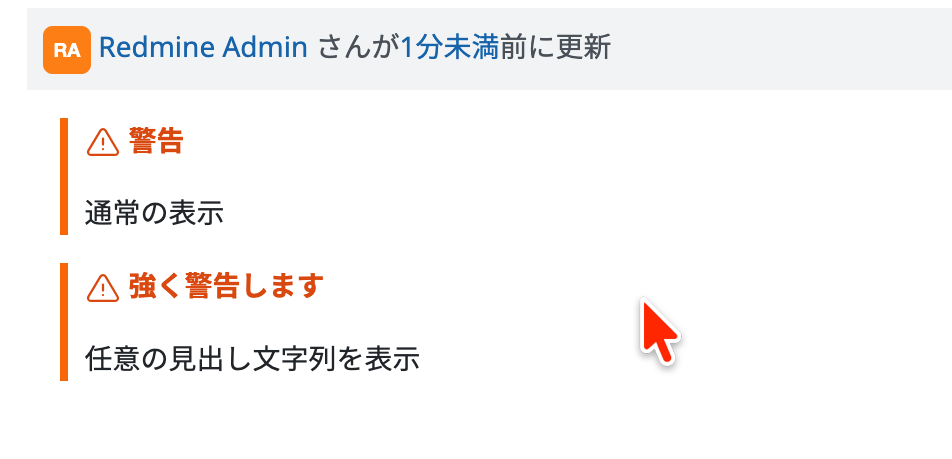 RedmineのMarkdownアラート表示の見出し文字列を変更したい